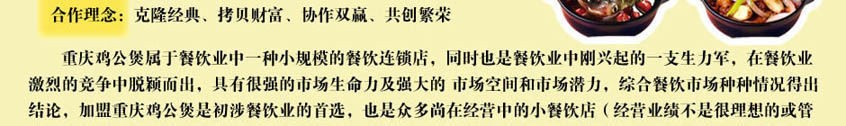 中的"重慶雞公煲"都能看到一派欣欣向榮的景象,在眾多的餐飲業(yè)中獨(dú)樹一幟,具有很強(qiáng)的市場感召力。