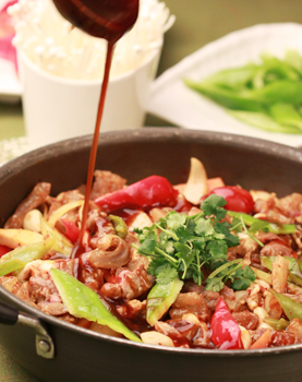 獨(dú)特的工藝:是指烹制技法,以燜為主,用十多種新鮮蔬菜加之秘制的底油、醬汁以及各種藥料燜制各種肉類(lèi)魚(yú)類(lèi)海鮮等食物,營(yíng)養(yǎng)不流失,汁濃味厚,綿嫩鮮香;加上秘制的高湯,還可涮吃各種蔬菜類(lèi),肉類(lèi)食品,可謂先吃后涮,回味雋永!