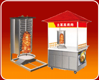 土耳其烤肉是利用十余種調(diào)料對牛、羊、雞等肉類進行浸泡腌制后。采用旋轉(zhuǎn)式烤肉機,電加熱烤熟后從烤肉柱上一片片削下,佐以沙拉、配料裝入特制的面餅中?救馄渥畲筇攸c是快速現(xiàn)場制作,可視性強,邊轉(zhuǎn)邊削邊吃,烤肉在光熱作用下,肉質(zhì)鮮嫩,色澤油亮,香嫩可口,不油膩,營養(yǎng)均衡