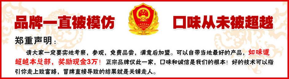 1.近期,餐飲業(yè)異常火爆!意向投資者咨詢踴躍,公司加盟電話經(jīng)常被打爆,客戶時常抱怨電話打不進,請相互理解。2、正宗品牌僅此一家,但是最近發(fā)現(xiàn)模仿,冒充,本品牌,嚴重損壞了官方總部的品牌形象,本餐飲總部在全國不設其他任何分部或子公司,如有冒充與本餐飲總部是同一家公司或者是分部的,純屬騙局!請大家一定要 實地考察免費品嘗,滿意后加盟。請認準總部地址:北京豐臺區(qū)右安門外大街2號迦南大廈15層?偛棵Q:鑫華美食 。謹防上當受騙!特此聲明!本頁面版權已經(jīng)公證,盜拷本廣告任何文案及圖片均屬侵權。免費咨詢電話:400-618-9599 。